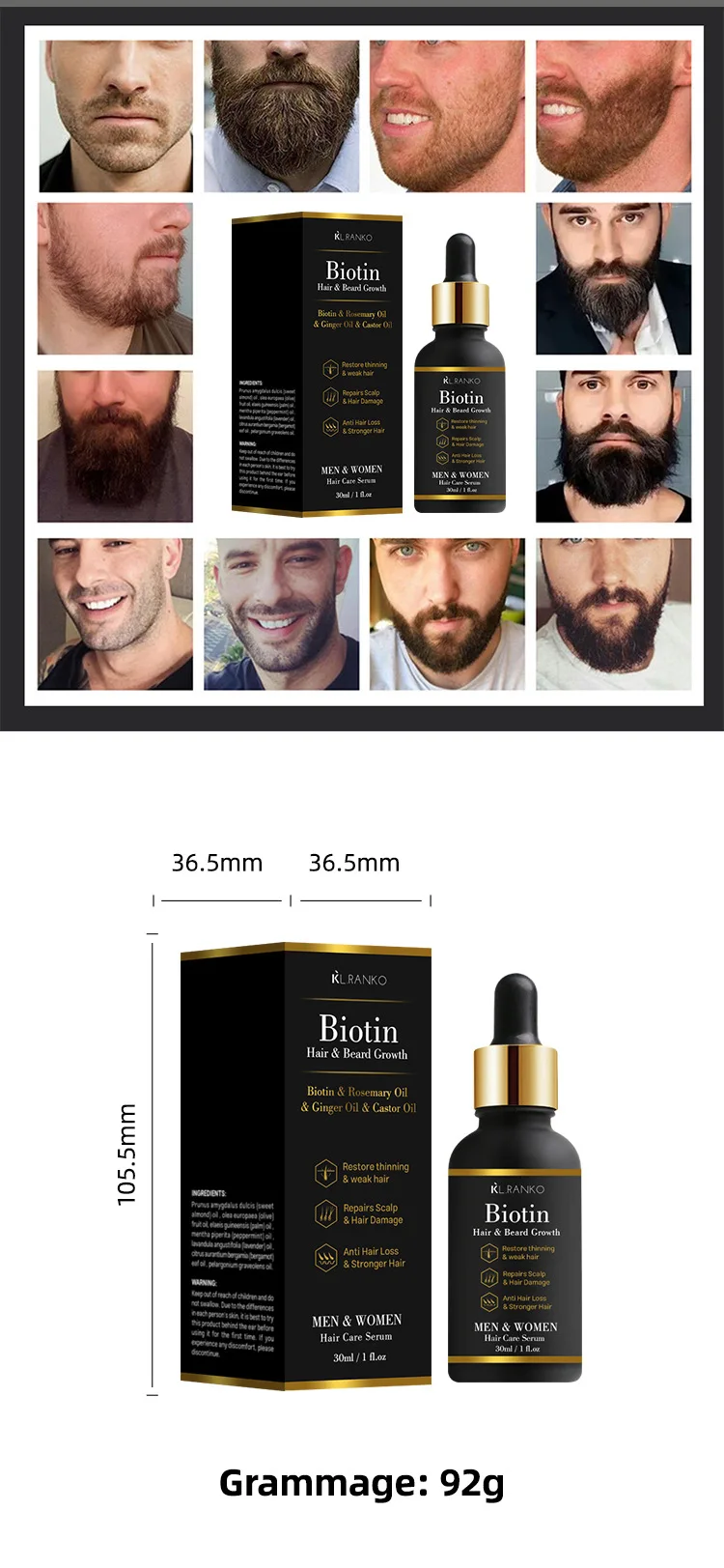 • Customizable Hair Growth Essential Oil with Organic Peppermint Ginger Herbal Ingredients Vegan Nourishing and Logo Added