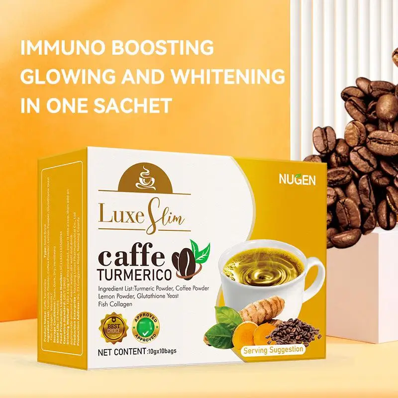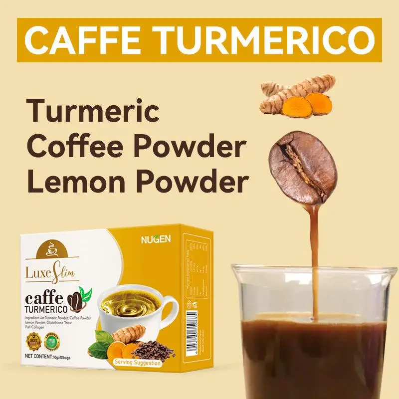 • Rich Turmeric Coffee Meets Rich Cocoa Dark Chocolate Drink Fish Collagen Peptide Infused with Plant Extract